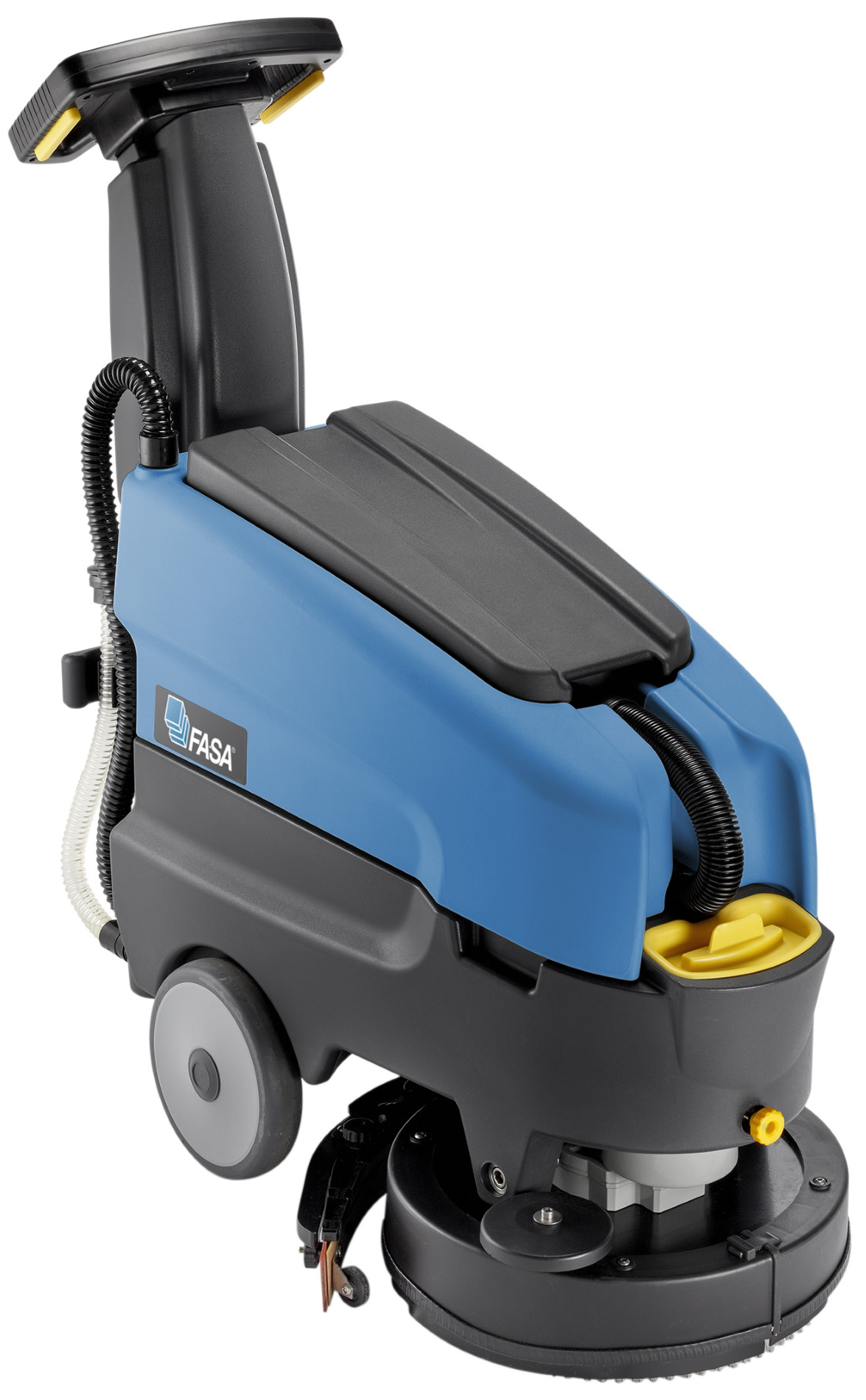 Mycí stroj na podlahu A1.5 36 B Fasa. Kompaktní bateriový mycí stroj A1.5 36 B Fasa, napájení 24 V, mycí záběr 360 mm, délka sušící lišty 460 mm, otáčení na malém prostoru, systém rychlé výměny kotouče. Baterie v základní výbavě.