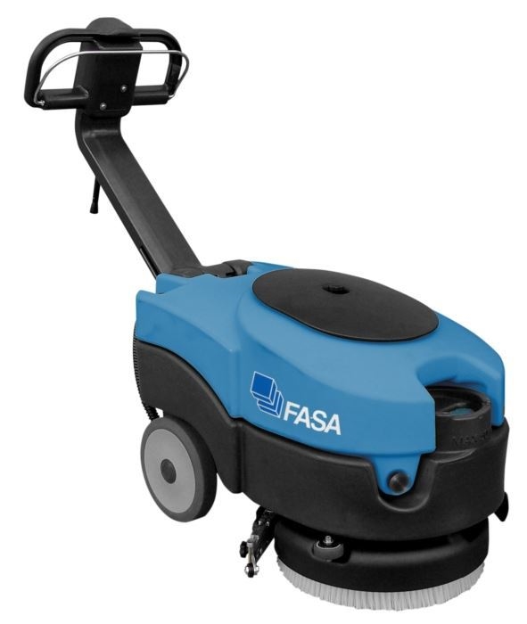 Podlahový mycí stroj A1 36E FASA, napájení 230 V/50 Hz, mycí záběr 360 mm, délka sušící lišty 460 mm, otáčení na malém prostoru, systém rychlé výměny kotouče.