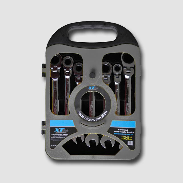 Sada očkoplochých ráčnových klíčů kloubových 10-19mm chrom 7 dílů