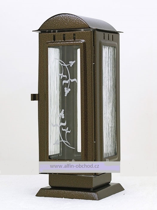 Svítilna na postavení na pomník, výstřih ovál, uchycení hmoždinkou , barevné varianty: černá-straro-zlatá-starostříbrná-staroměď rozměr 100x100x260 mm