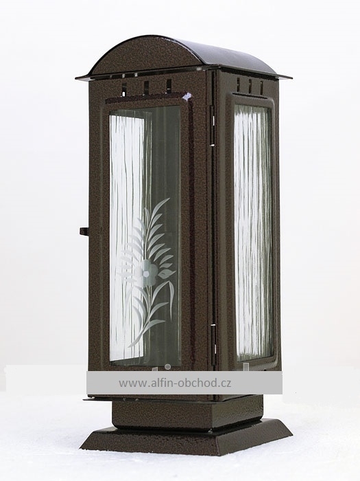 Svítilna na postavení na pomník, uchycení hmoždinkou, s oblou střechou.