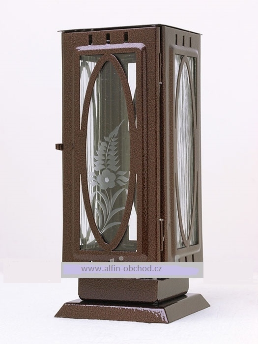 Svítilna na postavení na pomník, uchycení hmoždinkou, s ozdobným výstřihem oválu.