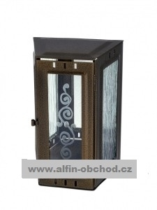 - svítilna závěsná s lichoběžníkovým tvarem bez podstavce na zavěšení na pomník
